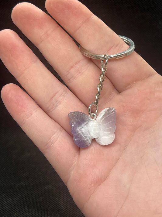 Amethyst or Rose Quartz Crystal Butterfly Keychain